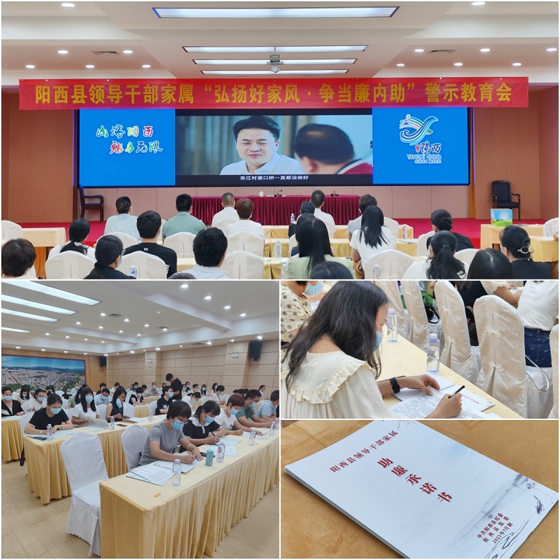 图:阳西县纪委监委组织召开阳西县领导干部家属“弘扬好家风·争当廉内助”警示教育会。