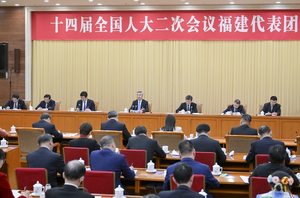 中共中央政治局常委、中央纪委书记李希5日下午来到他所在的福建代表团,同代表们一起审议政府工作报告。会场气氛活跃热烈,许光园、蔡战胜、王永澄等代表先后发言,李希认真倾听,并与代表们交流讨论。