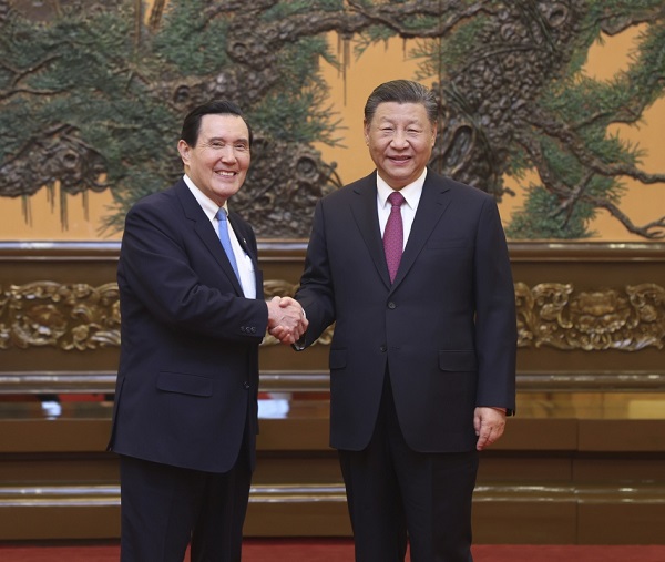 4月10日下午,中共中央总书记习近平在北京会见马英九一行。新华社记者 谢环驰 摄