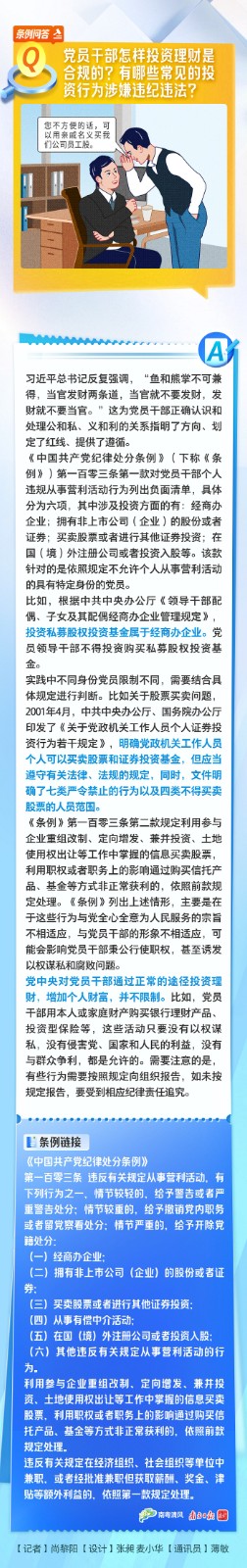《条例》问答⑧丨党员干部能投资理财吗? 哪些常见投资行为涉嫌违纪违法?