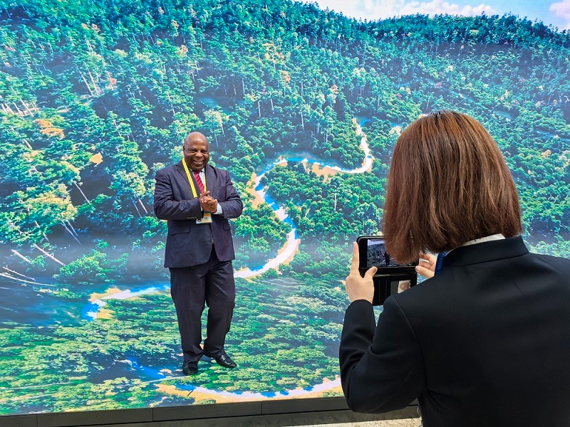 图为来自喀麦隆的随团记者吉恩·阿坦加纳在CAVE 8K超高清体验区参观。左翰嫡 摄