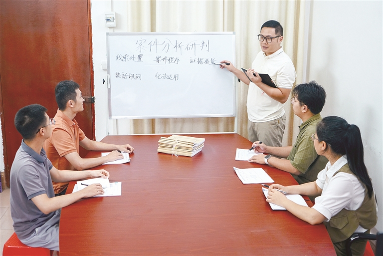 广西壮族自治区北流市纪委监委聚焦提升精准甄别、严防虚假投案的能力,围绕投案动机研判、证据链条核查、谈话策略运用等关键环节,组织纪检监察干部开展专题培训研讨,通过案例剖析、模拟推演、经验交流等方式,助力干部精准识别虚假投案。图为近日,该市纪检监察干部在专题研讨会上,围绕虚假投案典型案例的甄别要点交流探讨。李桂泉 摄