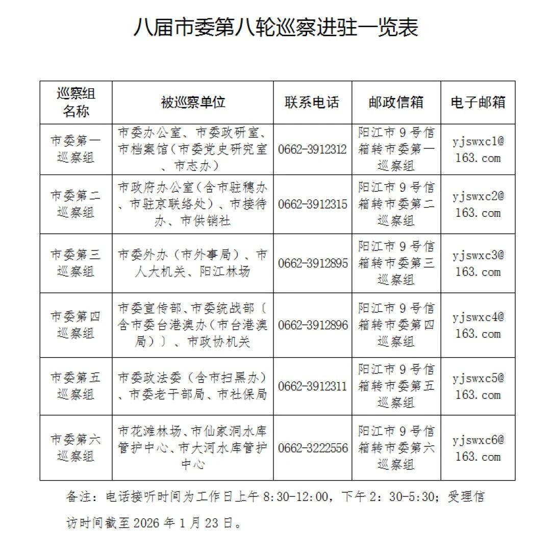 根据市委巡察工作部署,截至2025年11月3日,八届市委第八轮巡察的6个市委巡察组完成进驻工作。6个市委巡察组将对18家市直单位党组织开展常规巡察。