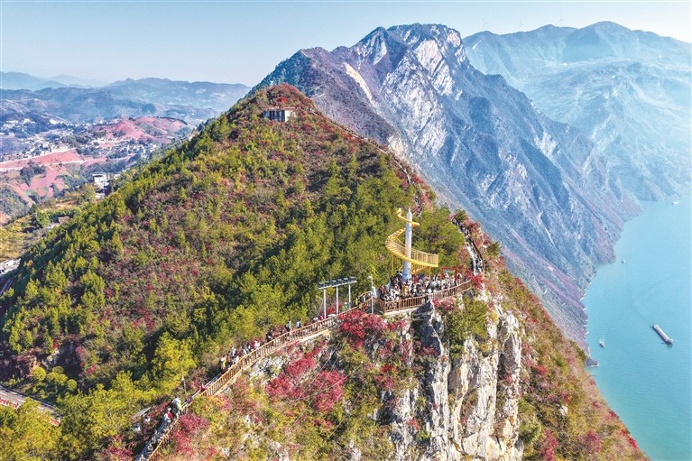 二十届中央纪委四次全会强调,要把落实党中央重大决策部署和习近平总书记重要指示批示作为政治监督的重中之重,盯住生态环境保护等重要部署,加强监督检查,保障落实到位。各级纪检监察机关深入学习贯彻习近平生态文明思想,立足职能职责、强化政治监督,保障绿水青山就是金山银山理念落实落地,凝聚起建设美丽中国的强大合力。图为游客在重庆巫山三峡龙脊游览。新华社发(汪长征 摄)