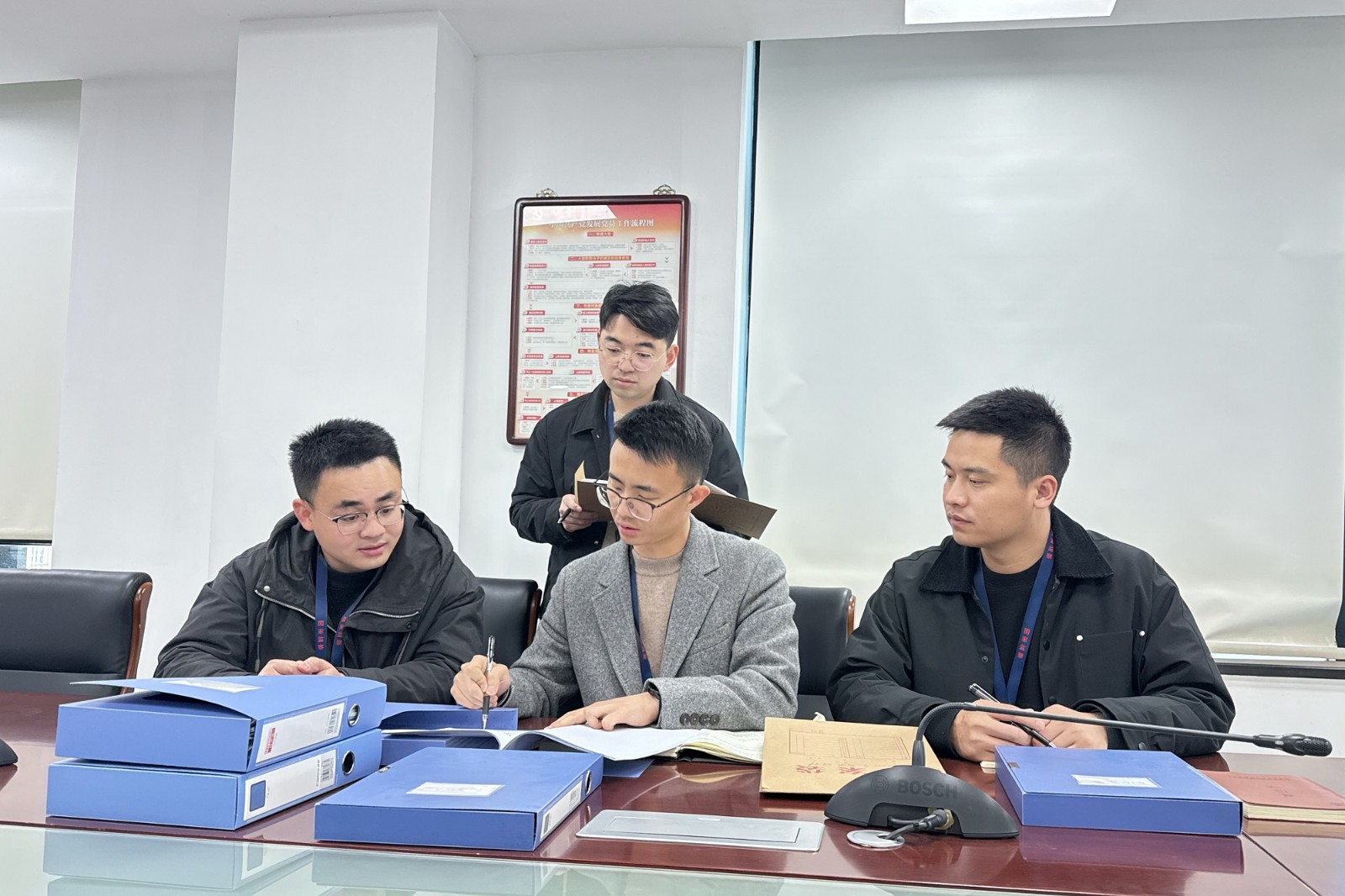 浙江省湖州市南浔区纪委监委结合查办案件中发现的党员领导干部拒不纠正亲属违规从业行为问题,深入分析相关问题成因,着力推动以案促改促治,提升办案质效。图为该区纪检监察干部围绕相关案件进行研判。 朱莉彦 摄